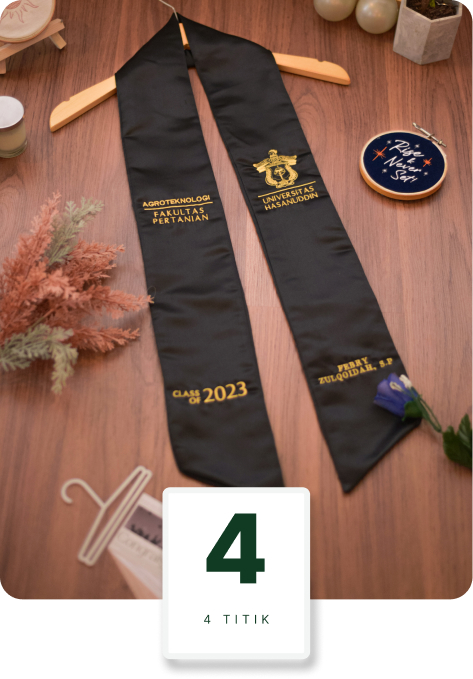 Agar selempangmu dapat digunakan sesuai dengan kebutuhan dan preferensi pribadimu, kami menyuguhkan beberapa tipe varian yang dibedakan oleh titik layout bordirannya. Setiap tipe selempang memiliki karakteristik dan keunikan masing-masing yang dapat disesuaikan dengan kebutuhan dan tema acara yang akan kamu hadiri.